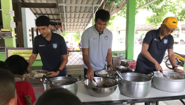3 นักเตะราชบุรี มิตรผล เลี้ยงอาหารกลางวันเด็กๆ โรงเรียนวัดหนองกระทุ่ม จ.ราชบุรี