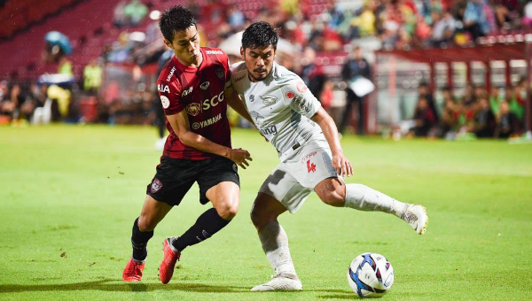 นาที 41 ทีมเยือน พลาดโอกาสขึ้นนำอีกครั้งจากจังหวะที่ มาเธอุส อัลเวส ใช้ความสามารถเฉพาะตัวไปเอาบอลมาก่อนไหลให้ วรชิต กนิตศรีบำเพ็ญ ข้ามหลอกมาถึง เกริกฤทธิ์ ทวีกาญจน์ แปคนเดียวโล่งๆ แต่ ทริสตอง โด ยังสกัดจากเส้นได้ และไม่มีจังหวะเพิ่มเติมจบครึ่งแรกเสมอกันอยู่ 1-1