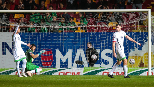 น.26 จากการประสานงานกันอย่างยอดเยี่ยมของ มิเชเลน ก็ทำให้ทีมเจ้าถิ่นขึ้นนำ 1-0 เมื่อ โอนูร์ คาย่า จ่ายให้กับ กุสตาฟ เองก์วอลล์ ทะลุเข้าเขตโทษ แล้ว เองก์วอลล์ ตบกลับเข้ากลางมาให้ ร็อบ ช็อฟฟ์ ยิงด้วยซ้ายที่เสาแรก หมดปัญญาที่กวินทร์จะเซฟไว้ได้
