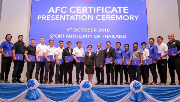 สำหรับการมอบครั้งนี้ประกอบไปด้วย ผู้ผ่านการอบรมหลักสูตร AFC ‘Pro’ Diploma Coaching Course จำนวน 18 คน, ผู้ผ่านการอบรมหลักสูตร AFC ‘A’ Coaching Certificate Course จำนวน 3 คน, ผู้ผ่านการอบรมหลักสูตร AFC ‘B’ Coaching Certificate Course จำนวน 19 คน, ผู้ผ่านการอบรมหลักสูตร AFC ‘C’ Coaching Certificate Course จำนวน 50 คน และ ผู้ผ่านการอบรมผู้ฝึกสอนกีฬาฟุตซอล FA Thailand Futsal Introductory Course จำนวน 240 คน