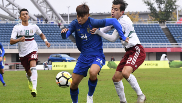 ณ สนาม หวานโจว ป๋ายลู่ สเตเดียม การแข่งขันฟุตบอล CFA Under-21 (1997) Men’s International Football Friendly Tournament 2018 นัดที่สอง ทีมชาติไทยชุดปรีโอลิมปิกส์ พบกับ ทีมชาติเม็กซิโก U21