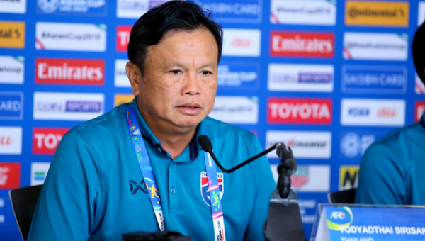 ศิริศักดิ์ ยอดญาติไทย รักษาการหัวหน้าผู้ฝึกสอนทีมชาติไทย แถลงข่าว ความพร้อม ภายในสนาม ฮัซซา บิน ซายิด สเตเดียม ก่อนพบกับ ทีมชาติจีน ในเอเชียนคัพ 2019 รอบ 16 ทีมสุดท้าย ที่ประเทศสหรัฐอาหรับเอมิเรตส์ (ยูเออี)