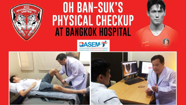 โอห์ บัน ซุค กองหลังทีมชาติเกาหลีใต้ เข้าตรวจร่างกายอย่างละเอียดกับ นาวาโท นพ.พรเทพ ม้ามณี แพทย์ประจำสโมสร เอสซีจี เมืองทองฯ ที่ศูนย์ BASEM ชั้น 5 รพ.กรุงเทพช่วงบ่ายที่ผ่านมา ปรากฏว่าสมบูรณ์เต็มที่ ไม่มีปัญหา
