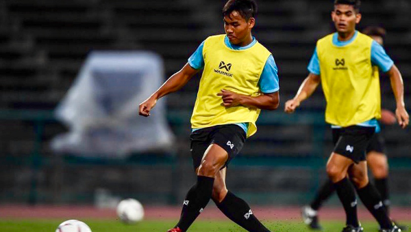 กรวิชญ์ ทะสา กองหน้าทีมชาติไทย รุ่นอายุไม่เกิน 22 ปี เผยถึงการซ้อมบนสนามหญ้าเทียมที่ สนามกีฬาแห่งชาติโอลิมปิก พนมเปญ พร้อมมองว่าเกมแรกที่จะพบทีมชาติติมอร์ เลสเต ไม่ใช่งานง่ายสำหรับทีมแน่นอน