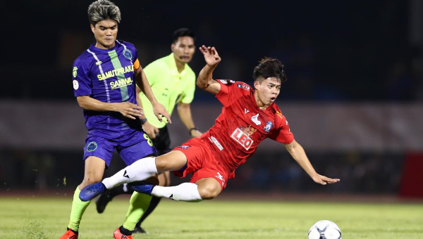 ทดเจ็บ คาเลา กองหน้าสมุทรปราการ ลากเดี่ยวเข้าไป ก่อนยิงเล่นทางเสาแรก แต่ลูกออกหลัง
