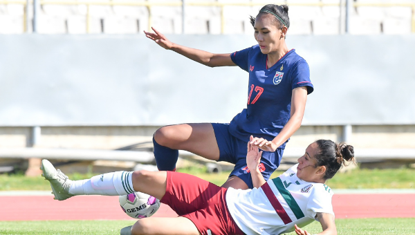 นาที 49 ไทยเกือบพลิกขึ้นนำ จากจังหวะที่ รัตติกาล ทองสมบัติผ่านบอลให้ สุชาวดี นิลธำรงค์ ได้ลากไปซัดเต็มข้อ แต่ไปติดเซฟผู้รักษาประตูของเม็กซิโก