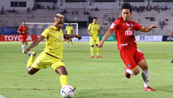 นาทีที่ 11 โอกาสของเจ้าถิ่น เมื่อ พิชิตพงษ์ เฉยฉิว ได้วางยาวให้ ดาวิด บาลา ควบขึ้นมาทางขวา ลากเข้าเขตโทษ ก่อนซัดเต็มข้อด้วยเท้าขวา แต่ยิงได้ไม่ดี บอลข้ามคานออกไป