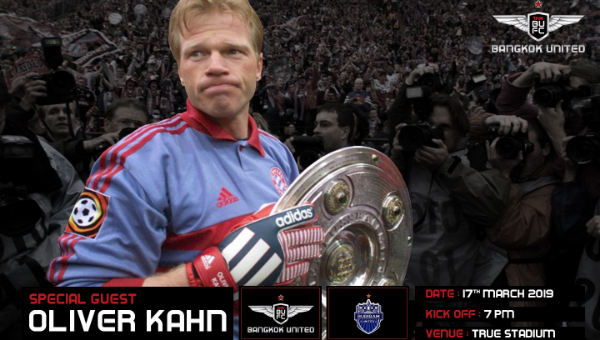 โอลิเวอร์ คาห์น จะเดินทางมาประเทศไทยในฐานะตัวแทนของ Bundesliga เพื่อทำกิจกรรมต่างๆ ซึ่งเขามีความสนใจที่จะชมการแข่งขันฟุตบอลไทยลีก จึงได้เลือกมาชมการแข่งขันคู่บิ๊กแมตช์ประจำสัปดาห์ที่ ทรู แบงค็อก ยูไนเต็ด จะพบกับแชมป์เก่า บุรีรัมย์ ยูไนเต็ด ในวันอาทิตย์ที่ 17 มีนาคม เวลา 19.00 น. ซึ่งในระหว่างพักครึ่งเวลาของการแข่งขัน คุณขจร เจียรวนนท์ ประธานสโมสรทรู แบงค็อก ยูไนเต็ด จะมีการมอบของที่ระลึกให้กับอดีตนายทวารมือหนึ่งของโลกรายนี้อีกด้วย