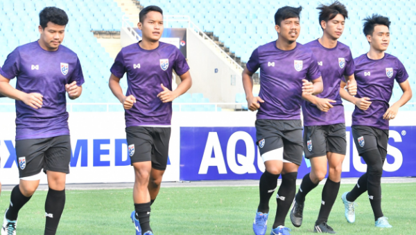 ณ สนาม มีดินห์ สเตเดียม ฟุตบอลชายทีมชาติไทยรุ่นอายุไม่เกิน 23 ปี ลงฝึกซ้อมเป็นครั้งสุดท้ายก่อนทำการแข่งขันฟุตบอลชิงแชมป์เอเชีย รุ่นอายุไม่เกิน 23 ปี รอบคัดเลือก กลุ่มเค พบกับ ทีมชาติอินโดนีเซีย