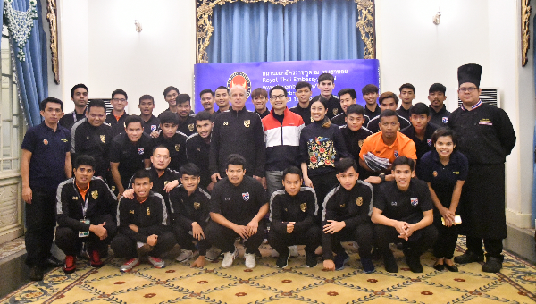 โดยทาง สถานเอกอัครราชทูต ได้จัดเตรียมอาหารค่ำเพื่อให้กับนักกีฬา พร้อมกล่าวให้กำลังใจสำหรับการแข่งขันนัดสุดท้ายที่จะพบกับ เวียดนาม ในวันที่ 26 มีนาคม 2562 นี้