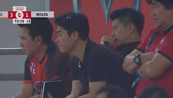 โดย ยูน จอง-ฮวาน ถูกจับภาพได้ขณะการถ่ายทอดสดฟุตบอล โตโยต้า ไทยลีก 2019 เกมที่ เอสซีจี เมืองทอง ยูไนเต็ด บุกไปโดน นครราชสีมา มาสด้า เอฟซี ถล่ม 1-3