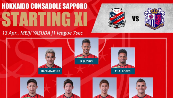 ชนาธิป สรงกระสินธ์ ลงเกือบเต็มเกมช่วย คอนซาโดเล่ ซัปโปโร บุกไปเก็บสามแต้มในถิ่น เซเรโซ โอซาก้า ในศึก เจลีก 1 เมื่อวันที่ 13 เมษายนที่ผ่านมา