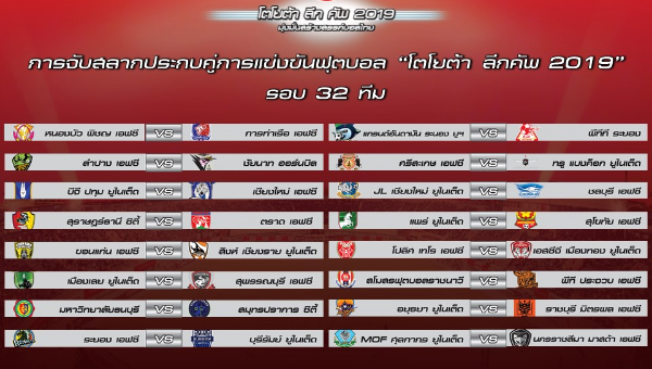 ผลการสลากประกบคู่การแข่งขันฟุตบอลโตโยต้า ลีกคัพ 2019 รอบ 32 ทีมสุดท้าย