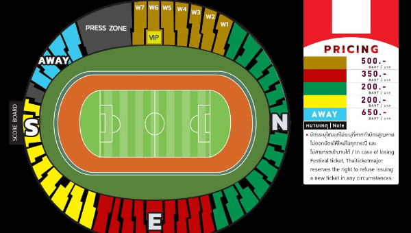 สำหรับแฟนบอลทั่วไป สามารถซื้อบัตรได้ตั้งแต่วันที่ 19 สิงหาคม เป็นต้นไป ส่วนราคาบัตรนั้น แบ่งตามโซนดังนี้