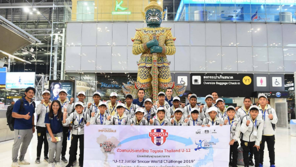 เมื่อเวลา 24.00 น.(27ส.ค62) ที่สนามบินสุวรรณภูมิ ทัพนักเตะทีม โตโยต้า ไทยแลนด์ รุ่นอายุไม่เกิน 12 ปี พร้อมทีมงานสตาฟ์โค้ช ได้เดินทางไปยัง เมืองโอซาก้า ประเทศญี่ปุ่น เพื่อทำการแข่งขัน ฟุตบอล Junior soccer World challenge 2019"  ที่จะทำการแข่งขันกันระหว่างวันที่ 29 สิงหาคม-1 กันยายน 2562 โดยการเดินทางในครั้งนี้ได้มีตัวแทนจาก บริษัท โตโยต้า มอเตอร์ ประเทศไทย จำกัด มาร่วมให้กำลังใจนักกีฬาที่จะเดินทางไปทำการแข่งขันในครั้งนี้ท่ามกลางบรรยากาศที่อบอุ่นและเป็นกันเอง