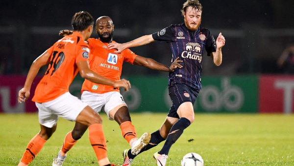 นาทีที่ 12 สุภโชค สารชาติ ได้บอลทางขวาของกรอบเขตโทษก่อนจะลากเข้าไปจนสุดเส้นหลังแล้วจ่ายยัดเข้าใน แรสมุส ยอนส์สัน ได้ง้างเท้ายิงบอลพุ่งออกหลังไป