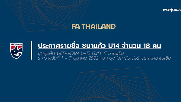 ประกาศ : รายชื่อ 18 แข้ง ชบาแก้ว U14 ชุดลุยศึก UEFA-FAM U-15 Girl’s ที่ มาเลเซีย