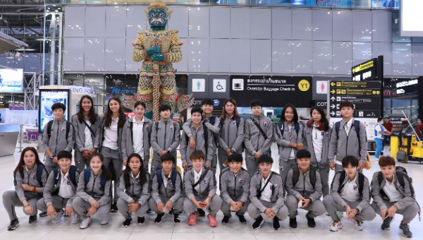 ณ ท่าอากาศยานสุวรรณภูมิ ฟุตบอลหญิงทีมชาติไทย รวมตัวกัน เพื่อเตรียมเดินทางไปประเทศไต้หวัน ทำการแข่งขันฟุตบอลกระชับมิตร เพื่อเตรียมสู้ศึกซีเกมส์ ที่ประเทศฟิลิปปินส์