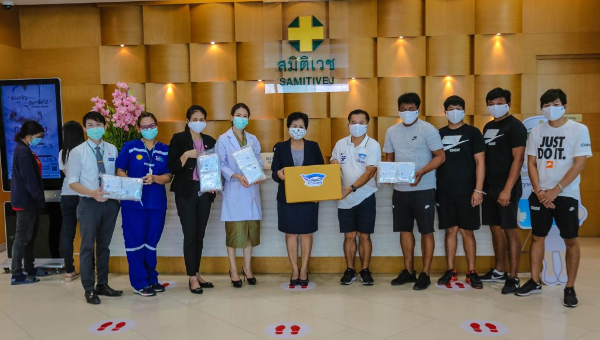 โค้ชเตี้ย ควงแขน ทีมสตาฟฟ์ เป็น ตัวแทนสโมสร มอบ หน้ากากอนามัย ให้ โรงพบาล