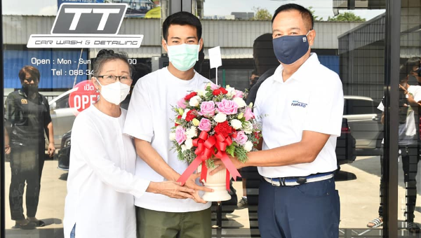 "บิ๊กอ๊อด" แสดงความยินดีกับ สารัช อยู่เย็น ในโอกาสเปิดกิจการล้างรถ