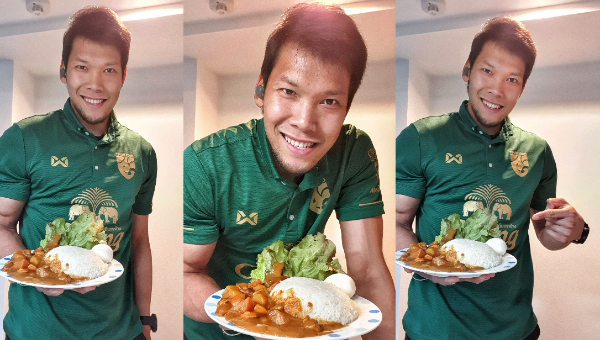 กวินทร์ ธรรมสัจจานันท์ นายด่านทีมชาติไทย แม้ตัวจะค้าแข้งอยู่ไกลถึงประเทศญี่ปุ่น แต่ขันอาสาเข้าครัวทำเมนูเด็ด "ข้าวแกงกะหรี่ไก่ ไข่ออนเซน" โชว์ผ่านเพจช้างศึก ก่อนส่งสูตรเด็ดมาปรุงสดๆ และส่งมอบให้กับบุคคลากรทางการแพทย์โรงพยาบาลทรวงอก เพื่อเป็นกำลังใจในช่วงวิกิฤตโควิด-19 วันพฤหัสบดีที่ 21 พฤษภาคม 2563 เวลา 10.00 น.