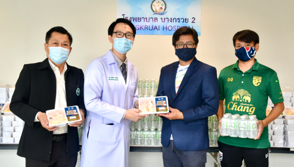 ณ โรงพยาบาลบางกรวย 2  สมาคมกีฬาฟุตบอลแห่งประเทศไทย ในพระบรมราชูปถัมภ์ ร่วมกับ เครื่องดื่มตราช้าง ส่งมอบอาหารเมนูพิเศษ “ข้าวผัดพริกเผา+ต้มจืด”ของ “ศศลักษณ์ ไหประโคน” ดาวเตะทีมชาติไทย ให้แก่บุคลากรทางการแพทย์โรงพยาบาลบางกรวย 2  เพื่อเป็นกำลังใจและสนับสนุนการทำงานในช่วงวิกฤติการณ์โควิด-19