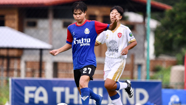 การแข่งขันฟุตบอลลีกหญิง ไทย วีเมนส์ลีก รอบคัดเลือก กลุ่ม เอ นัดแรก ที่สนาม ในศูนย์พัฒนาศักยภาพกีฬา ภายในมหาวิทยาลัยกรุงเทพธนบุรี โรงเรียน กีฬาลำปาง พบกับ หินโคน ยูไนเต็ด
