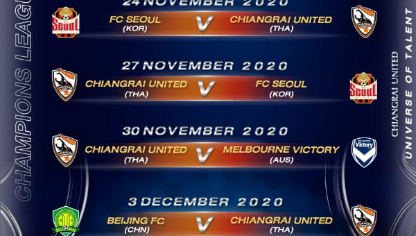 สมาพันธ์ฟุตบอลเอเชีย (AFC) ได้กำหนดการโปรแกรมนัดตกค้างศึกฟุตบอล ACL 2020 ออกมาอย่างเป็นทางการ ซึ่งทางเชียงราย ยูไนเต็ด ตัวแทนหนึ่งเดียวของประเทศไทย อยู่กลุ่มอี ร่วมกับ เอฟซี โซล , ปักกิ่ง กั๋วอัน และ เมลเบิร์น วิคตอรี่ โดยเชียงราย ยูไนเต็ด ลงสนามไปแล้ว 2 นัดยังไม่มีคะแนน
