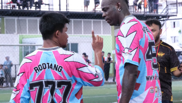 มาริโอ บาโลเตลลี่ อดีตกองหน้าทีมชาติอิตาลี ตอบรับคำเชิญของ รถถัง จิตรเมืองนนท์ นักมวยไทยชื่อดังมา ร่วม ลงสนามในศึกฟุตบอลเดินสาย รายการ ”ลูกทรายกองดิน ลีก“ ที่ สนาม ดับเบิ้ล พี. ซอคเกอร์