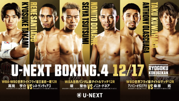 U-NEXT BOXING 4: สะท้านสังเวียนเรียวโกกุ! เพิ่มคู่ชิงโลกคู่ที่ 3 'ปรินเซซา' ป้องกันแชมป์ WBO ฟลายเวต ดวลเดือด ทาคุคุวาฮาระ
