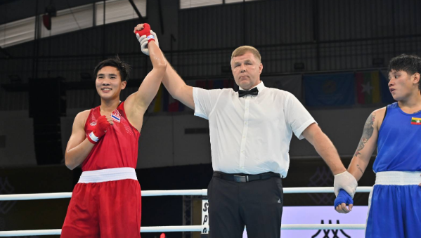 รุ่น 54 กก. ชาย: ธนรัฐ แสงเพชร ดีกรีเหรียญทองซีเกมส์ 2023 เอาชนะคะแนน ริซัล วาฮิดี โมฮัมหมัด (มาเลเซีย) 5-0 ผ่านเข้าชิงเป็นคนที่ 9