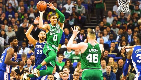 เจย์สัน เททั่ม (หมายเลข 0) รุกกี้วัย 19 ปีของ บอสตัน เซลติกส์ เข่าซ้ายเดี้ยงมาจากเกมกับ ฟิลาเดลเฟีย เซเว่นตี้ซิกเซอร์ส