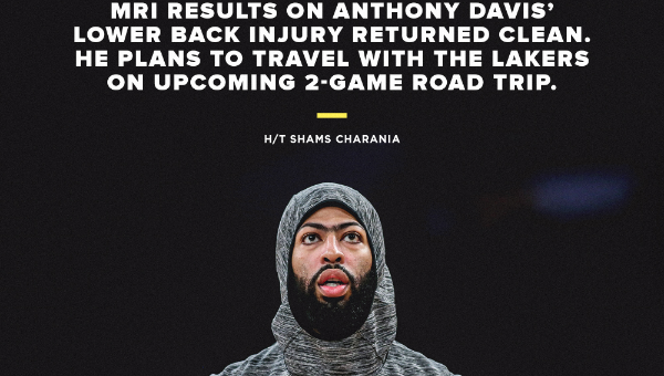 แอนโธนี่ เดวิส สามารถร่วมเดินทางไปกับคณะ แอลเอ เลเกอร์ส เพื่อแข่งฐานะทีมเยือน หลังทราบว่าผลสแกนด้วยคลื่นแม่เหล็กไฟฟ้า พบว่าไร้อาการเสียหายของเอ็นหรือกล้ามเนื้อ