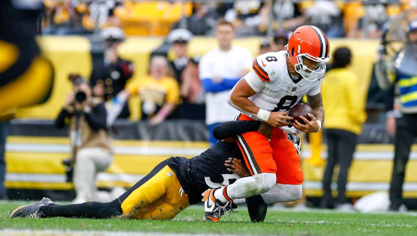 เจเลน แรมซี่ย์ ทำผลงานโดดเด่นด้วยการเล่นงาน ดิลลอน แกเบรียล จอมทัพรุคกี้ของ คลีฟแลนด์ บราวน์ส ถึงสองแซ็ค