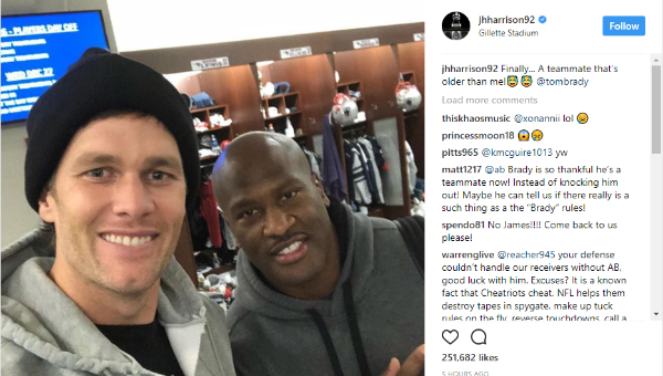 เจมส์ แฮร์ริสัน อดีตไลน์แบ็กเกอร์ สตีลเลอร์ส โพสต์รูปถ่ายคู่ ทอม เบรดี้ ลงอินสตาแกรมหลังการเซ็นสัญญากับ นิว อิงแลนด์ เพเทรียตส์